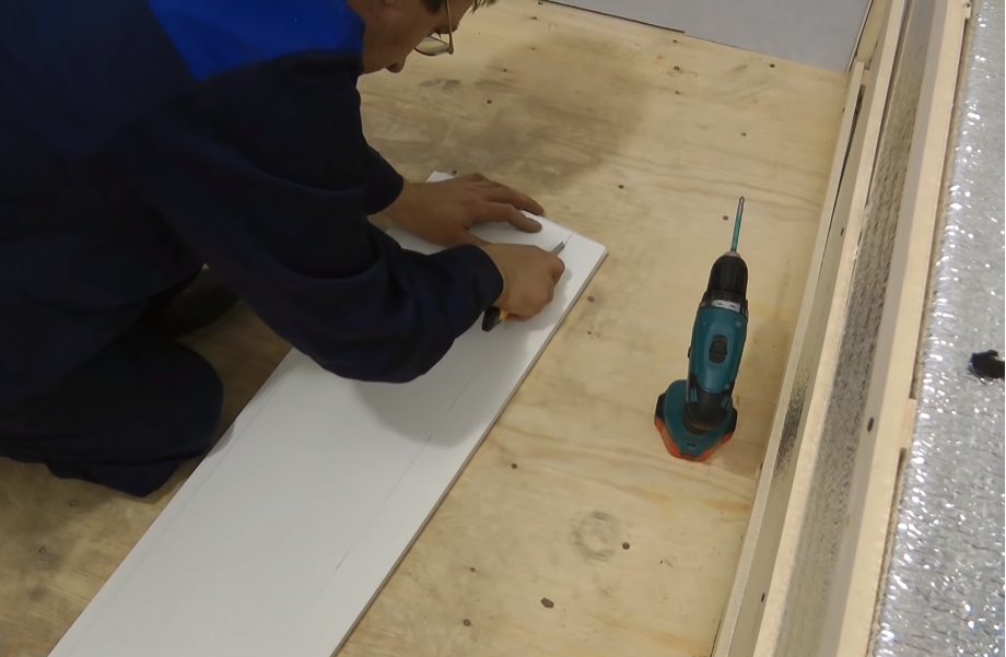гибкая панель прикладывается к основанию. Ее положение контролируется по линиям ранее нанесенной разметки. Панель аккуратно прижимают к основанию;