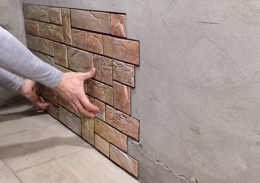 - Резиновым валиком тщательно придавливают каждую плиту к стене;