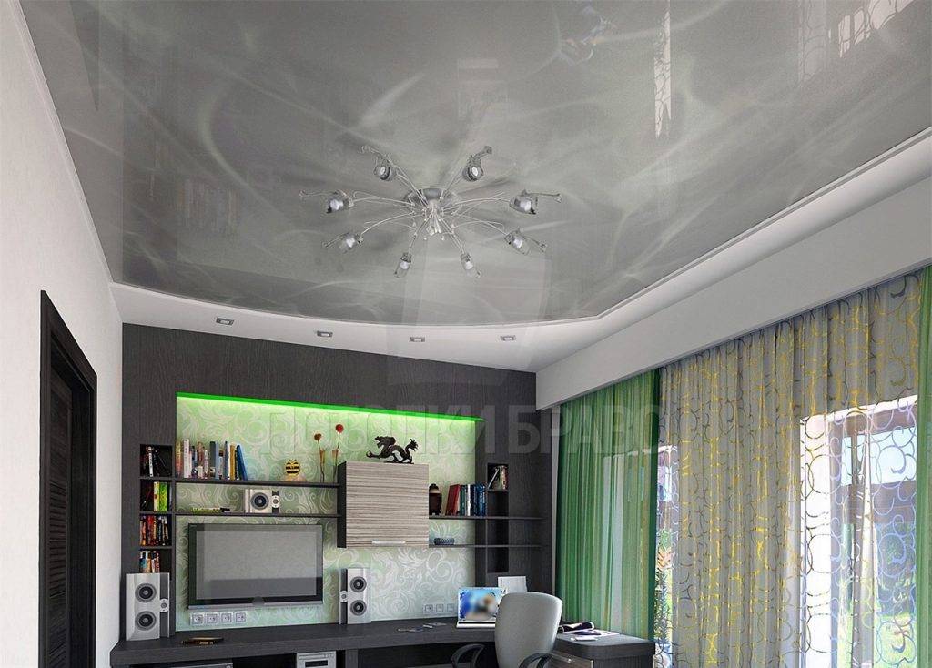 Также образцы натяжных потолков различаются по нанесению узоров, фотопечати, обустройству подсветки, дополнительных фигурных конструкций, уровней.