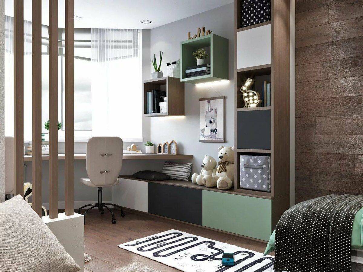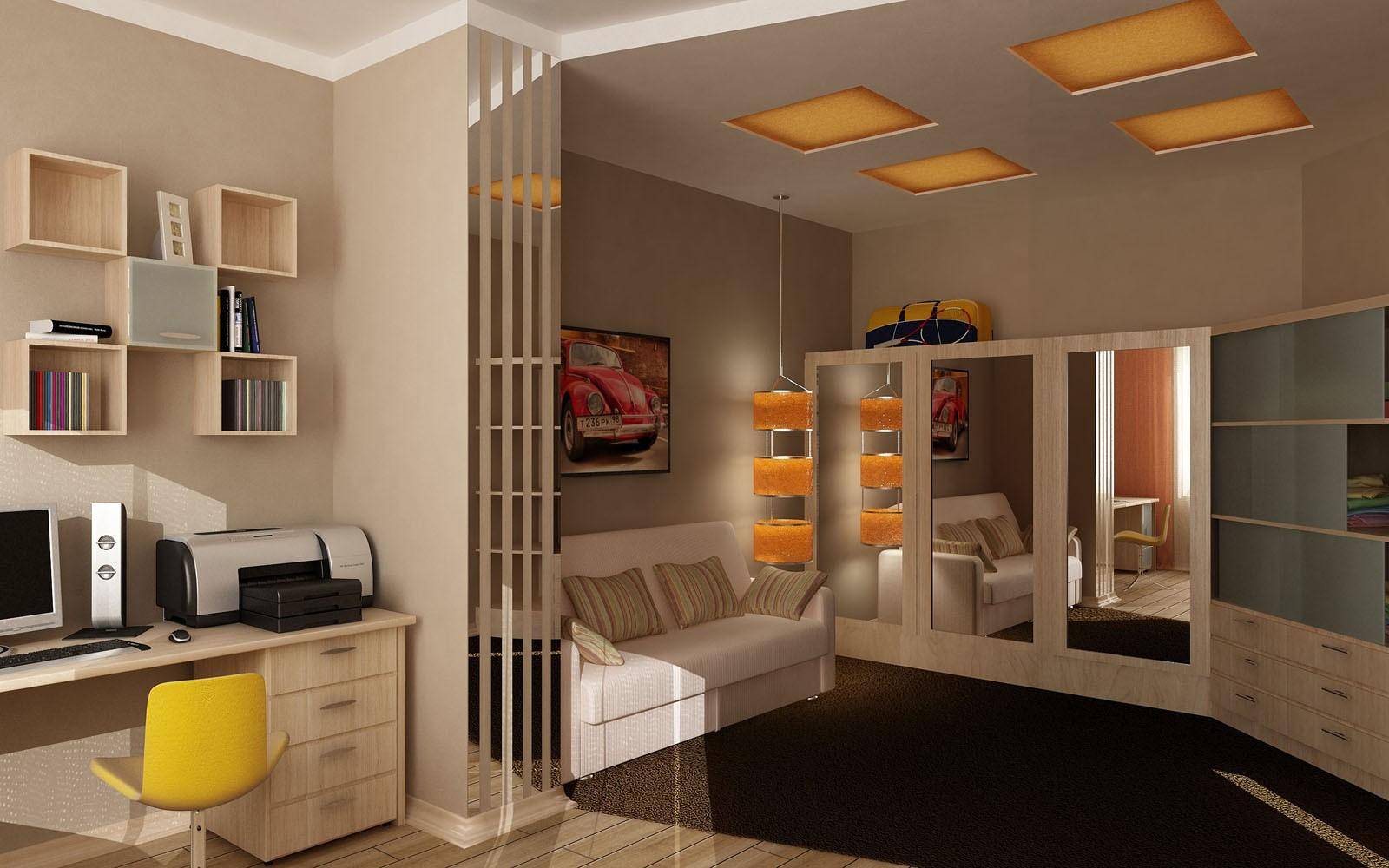 Комбинации с цветом для зонирования пространстваЗонирование рабочего места в комнате подростка