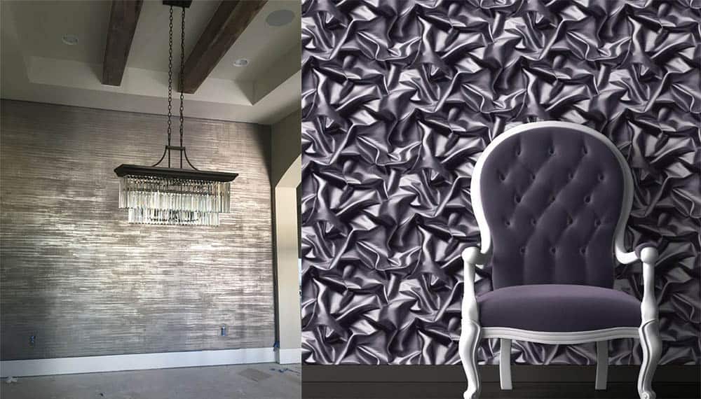 В основном, такие интересные обои используются для получения эффекта металлической, бархатной, шелковой стены.