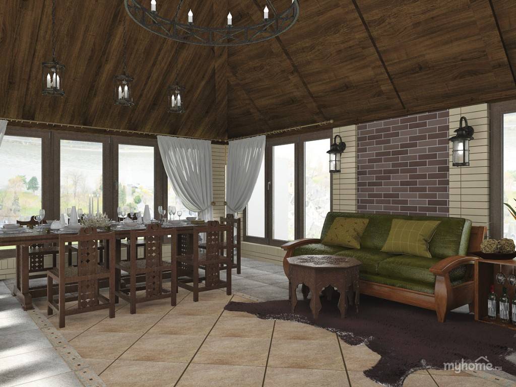 А почему бы и нет? Ведь беседка может представлять собой закрытое и даже обогреваемое зимой помещение, позволяющее вынести за пределы дома кухню и даже гостиную. По размерам она может превосходить аналогичные помещения, которые традиционно обустраиваются в доме, и, думаем, что приведённый ниже пример подтверждает эти слова. Кстати, отличная идея для респектабельной усадьбы!