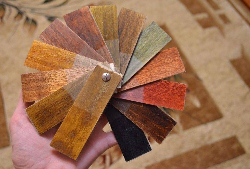 Палитра оттенков достаточно разнообразна, с имитацией ценных пород дерева. Производители выпускают цветные морилки под дуб, эбеновое дерево, палисандр, орех, красное дерево, венге и другие.