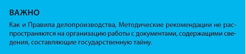 Сфера действия Методических рекомендаций, как и Правил делопроизводства, значительно расширена: они предназначены для служб делопроизводства федеральных органов государственной власти, иных федеральных государственных органов, органов государственной власти и иных государственных органов субъектов Российской Федерации (все эти органы в совокупности называются государственными органами), органов местного самоуправления.