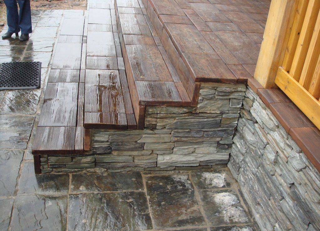 бетонный камень — самый простой в производстве, а потому и самый дешевый. Изготавливается из бетона высокой марки прочности путем заливания его в соответствующую форму и трамбовки. Подобным способом можно изготовить камень любого размера, формы и рельефа, окрасить его в массе и сымитировать хоть гранит, хоть сланец. Прочность такого камня высокая и аналогична цементному штукатурному раствору, вес, правда, также высоковат. Выделяют еще архитектурный камень — тот же бетонный, но в его состав входят минеральные наполнители и специальные модификаторы;