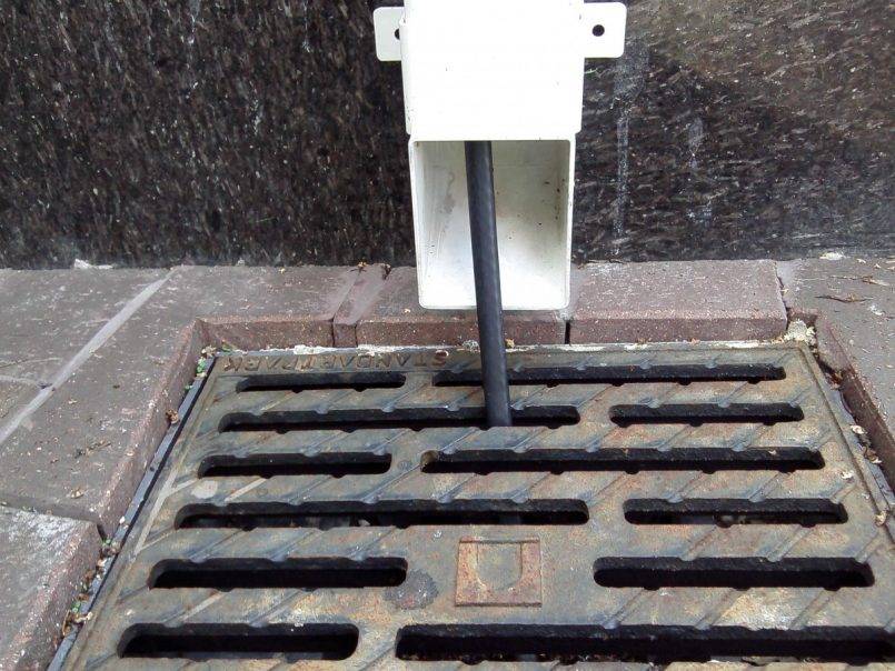 Внутри водостоков для закрепления кабеля используется та же лента для монтажа или термоусадочная трубка. Для деталей, длина которых превышает 6 м, дополнительно используется металлический трос. К нему прикрепляется кабель, чтобы снять с последнего несущую нагрузку.