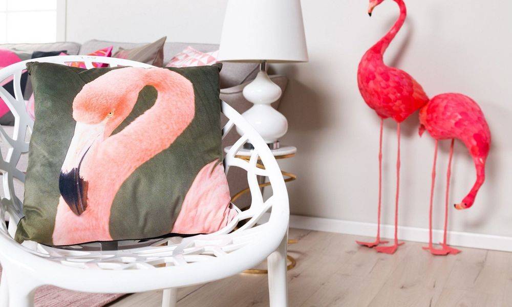 Фламинго прекрасно смотрятся в различных стилях оформления (эклектика, минимализм, лофт и так далее).