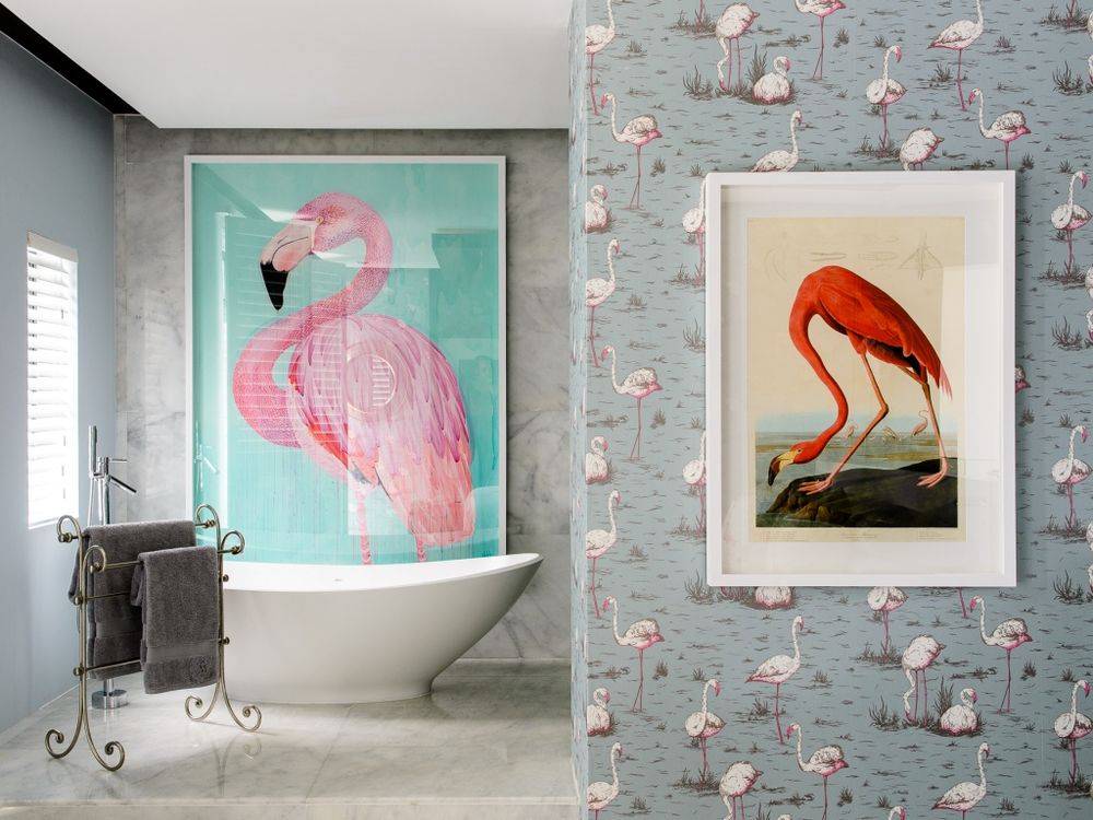 Павлины и розовые фламинго акцентируют внимание на роскоши. Это однозначно делается для демонстрации, а потому размещается в гостиной, но фламинго отлично вписываются и в ванную