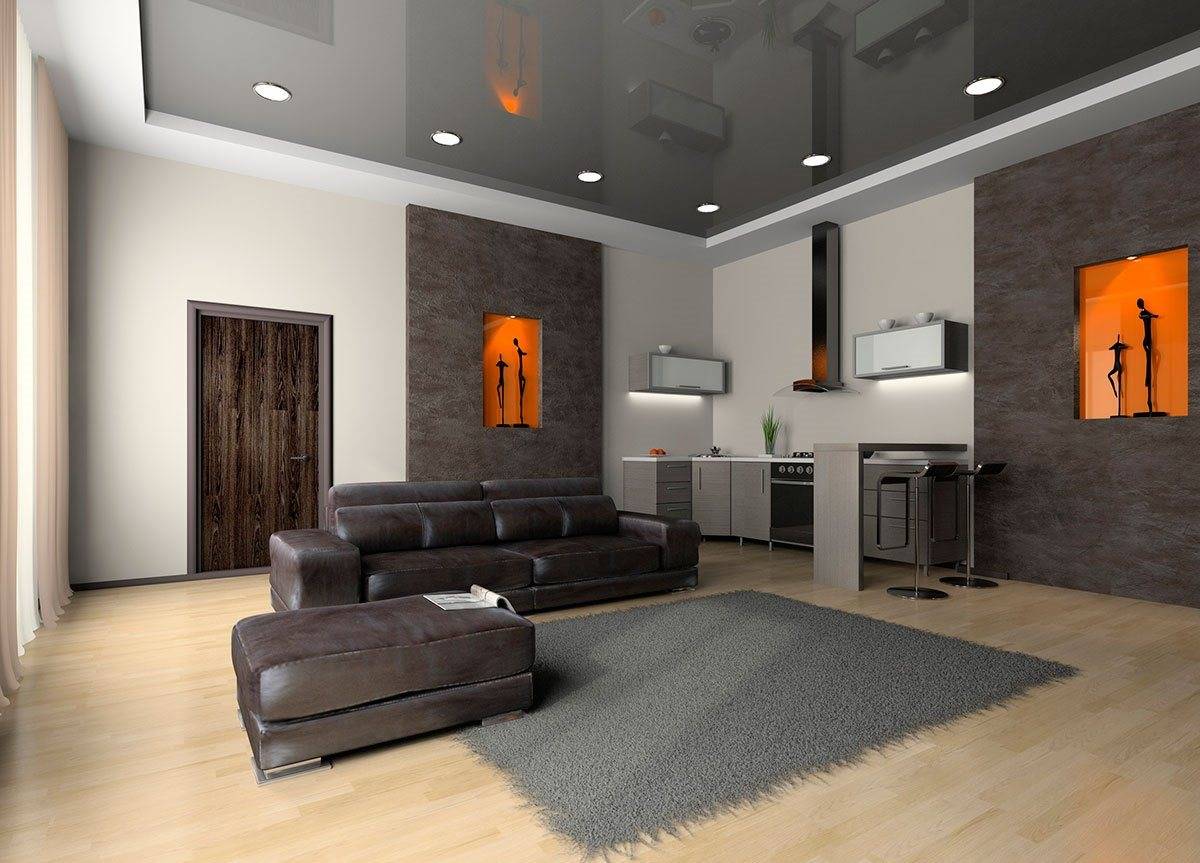 В жилых помещениях черный потолок обычно встречается в санузлах, ванных комнатах и гостиных. Как правило, в спальнях такие потолки делают очень редко – для зоны сна больше всего подходят теплые оттенки, расслабляющие психику.
