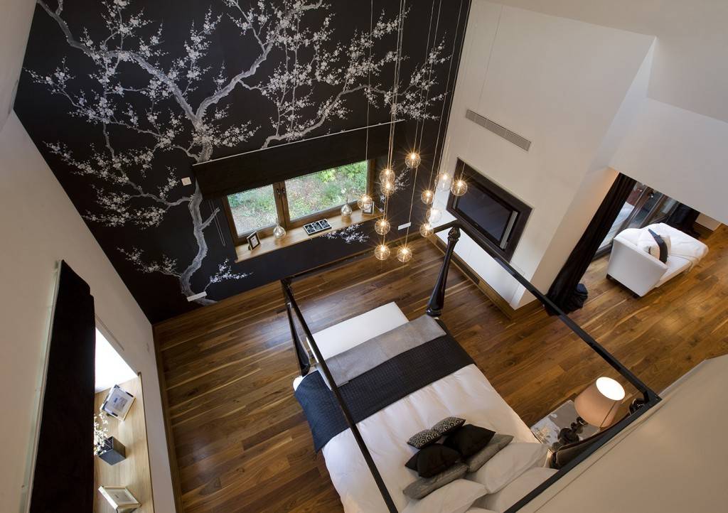 Но интерьеры с применением таких обоев вполне могут послужить замечательными примерами для вдохновения. Своими руками можно сотворить похожую обстановку, а в качестве покрытия для стен можно подобрать полотна, похожие по цвету или рисунку.