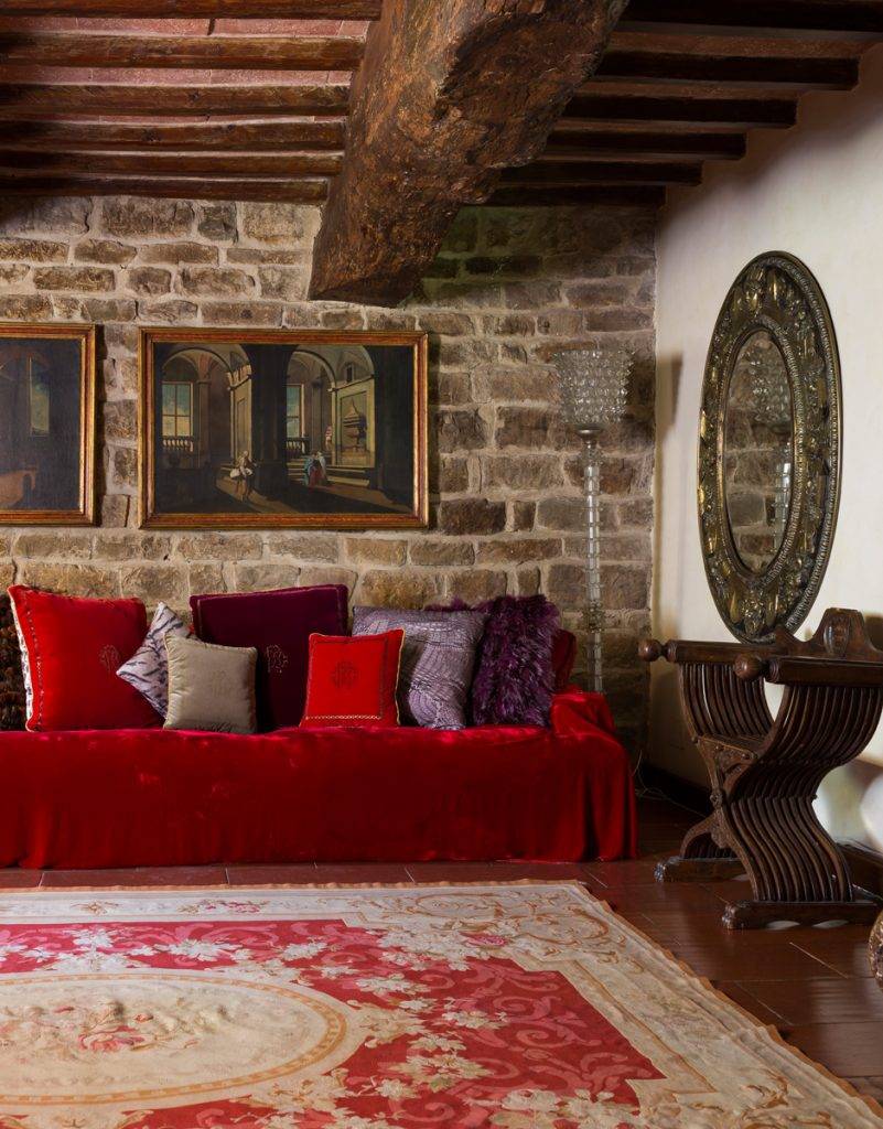 Его дом, 32-акровое тосканское поместье, является редким примером блеска и дизайна, уникальной архитектуры, буйства красок и блесток, построенных во Флоренции полностью в стиле Кавалли. Разработанный знаменитым архитектором Итало Рота, комплекс отражает вкус дизайнера, а также цвета одежды, любовь к лошадям, и ту любовь к провокации, которая отличает Кавалли. Он известен тем, что наносил отпечатки животных на все — от красных платьев и чашек для эспрессо, до одежды для собачек. Теперь Вы можете представить интерьер этого дома.