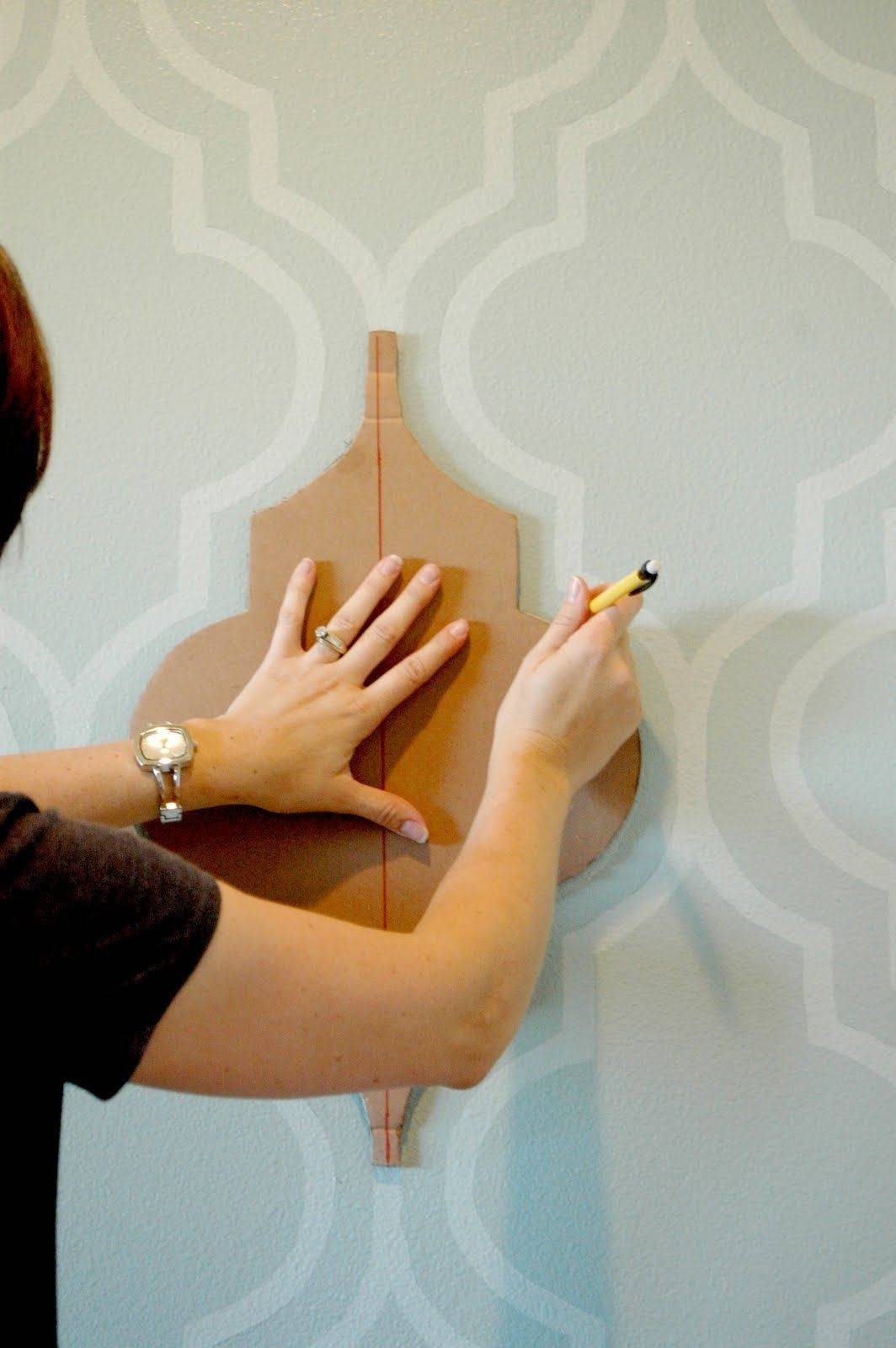 Если вы никогда не занимались рисованием по трафарету, потренируйтесь на бумаге. Когда поверите, что все получится, сделайте на стене пометки, проведите нужные линии, чтобы легче перемещать трафарет.