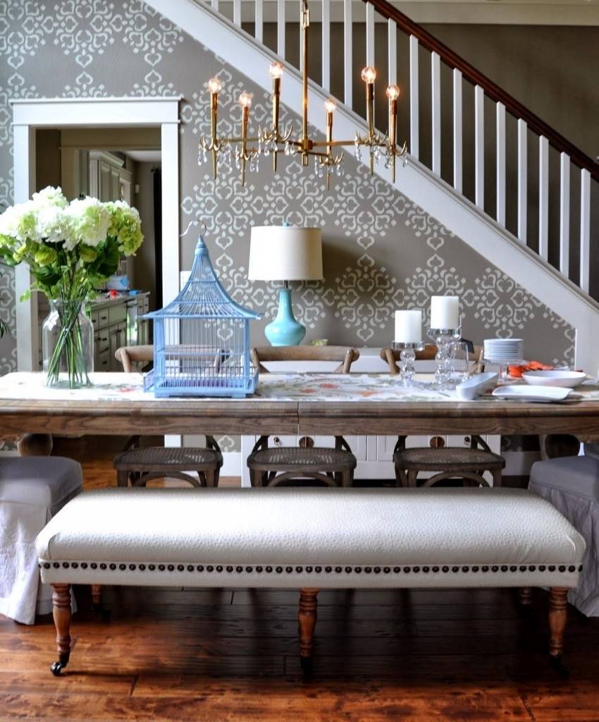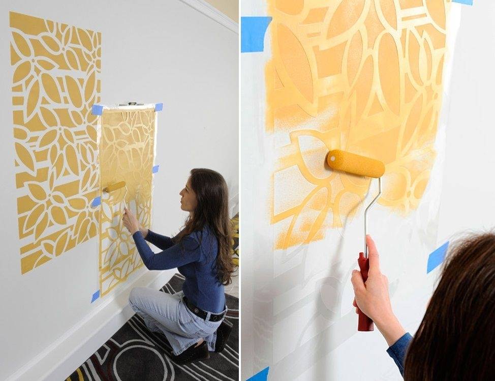 Не стоит спешить с выбором трафарета. Роспись останется на стене до следующего ремонта, так что она должна вам очень нравиться. Продумайте, какой рисунок лучше сочетается с дизайном вашей комнаты. Или вы рискнете сами нарисовать трафарет?