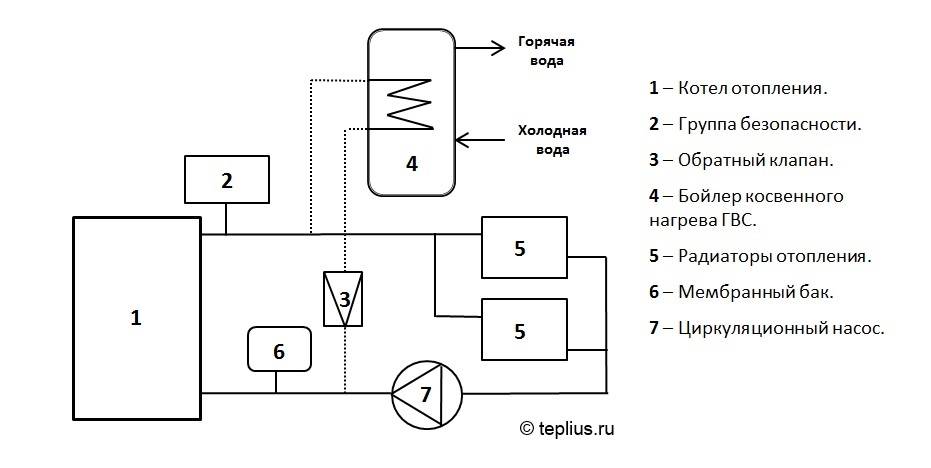 Обвязка твердотопливного котла с отдельным бойлером ГВС: