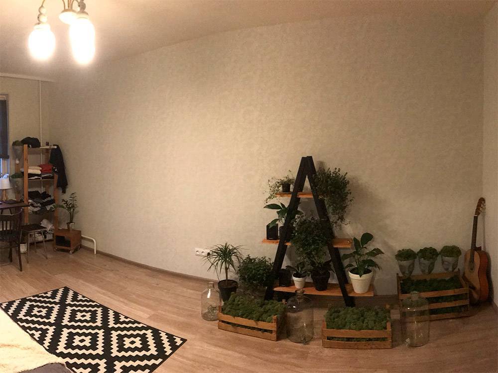 Когда я заехал в эту квартиру, в ней не было ничего. Даже кухня была пустая. Но арендодатель — мой друг — установил кухонный гарнитур в первую же неделю. В квартире был нейтральный косметический ремонт: на полу простой ламинат, а на стенах обычные однотонные обои. Она была неплохой, но все же это не квартира из моих представлений. Снял я ее за 25 000 Р плюс коммунальные услуги — около 4500 Р в месяц.