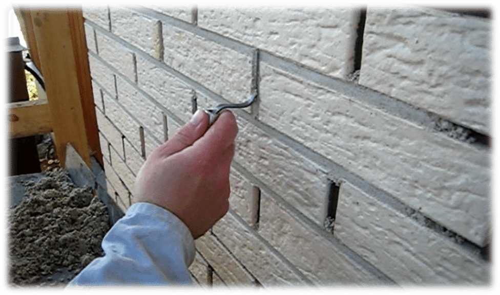 Расшивка швов происходит после окончательного схватывания декоративного материала и поверхности стены. Инструкция от изготовителя искусственного камня содержит рекомендации по применению вида затирочного состава.