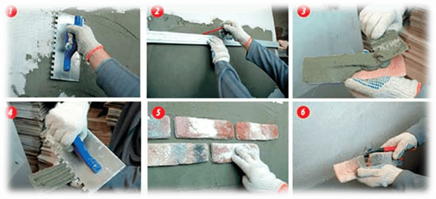 При выполнении отделочных работ из искусственного камня можно применить технику кладки, при которой сохраняются швы. Для того чтобы швы были ровными, необходимо между ними установить клинья из пластика. Это позволит удержать элементы кладки в необходимом положении, пока схватывается клеевой раствор.