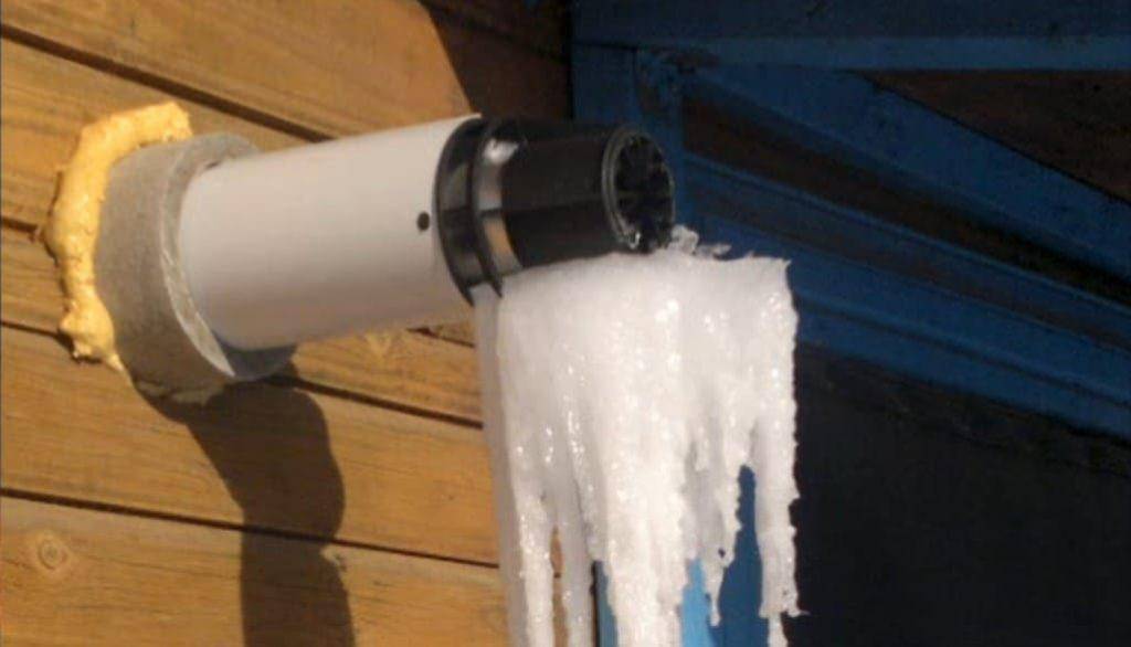Если камера сгорания открытая, посмотрите, не забита ли она. При закрытой камере с наружной трубы может капать конденсат, который попадает во внутреннюю трубу. Зимой при низкой температуре закрывается доступ подачи воздуха из-за намерзания льда.