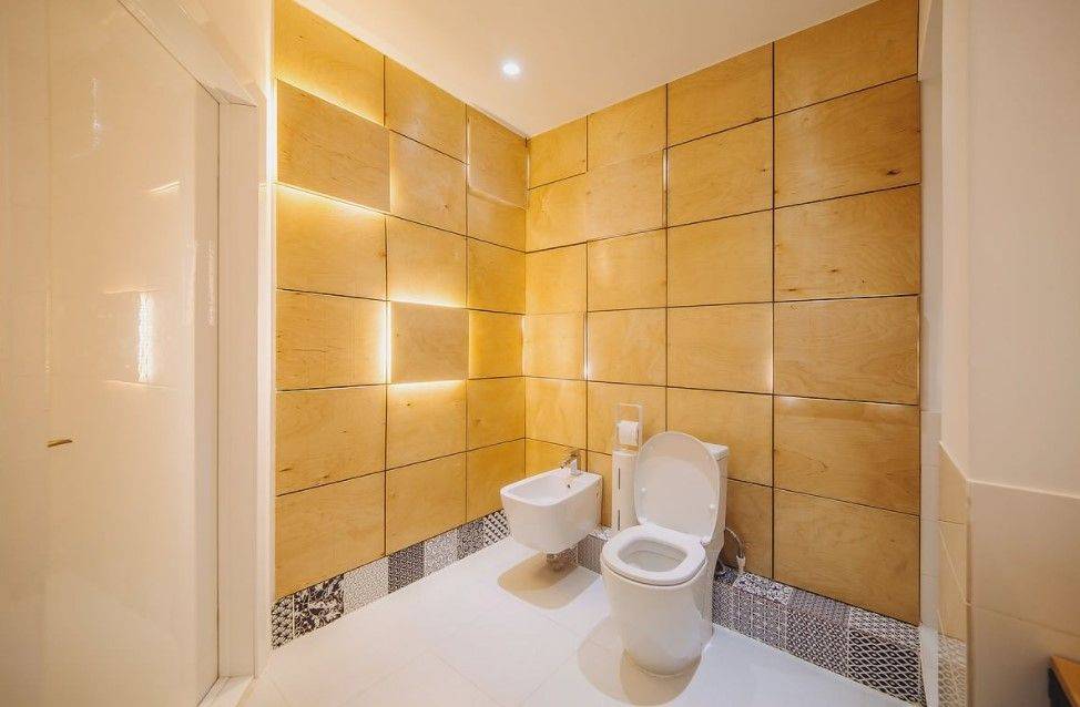 В ванной лучший вариант – небольшие, но яркие лампы, которые не будут бросаться в глаза, но при этом хорошо осветят помещение. Если необходимо яркое освещение всей ванной комнаты, то светильники должны располагаться на одинаковом расстоянии друг от друга и, желательно, по периметру стен. Однако больше всего света необходимо в той зоне, где размещено зеркало.
