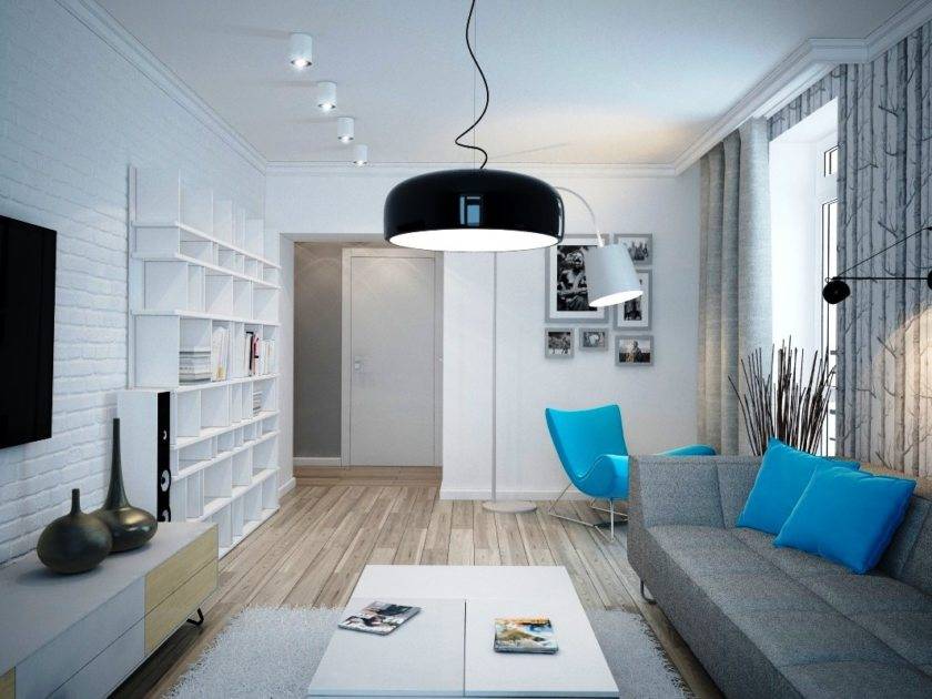 - В продолговатых гостиных не стоит размещать единственную люстру по центру. Лучше установить несколько светильников, равномерно распределив их по комнате. В помещении не должно быть темных углов. Причем добиться хорошей освещенности нужно посредством основного света. Дополнительные источники призваны выполнять только специальные задачи (например, локальное освещение для чтения или подсветка бара).