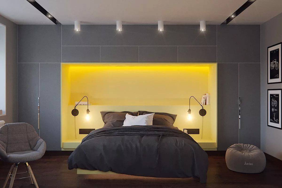 - добейтесь равномерного освещения всех участков спальни, чтобы избежать игры теней и затемнения в углах помещения;