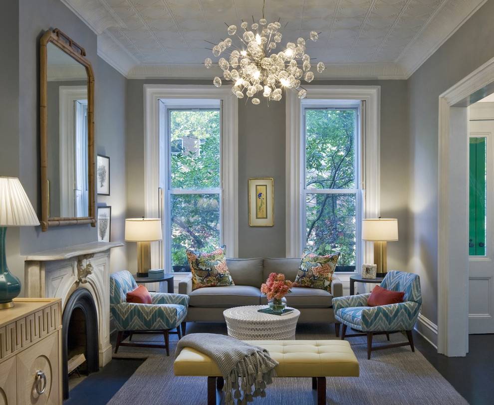 Общий свет – это приборы на потолке, обеспечивающие равномерный рассеянный свет. Чаще всего это люстры с несколькими лампочками, текстильными или стеклянными абажурами и плафонами. Светильник на потолке ни в коем случае не должен отбрасывать тени или блики – это испортит всю обстановку, будет раздражать взгляд.
