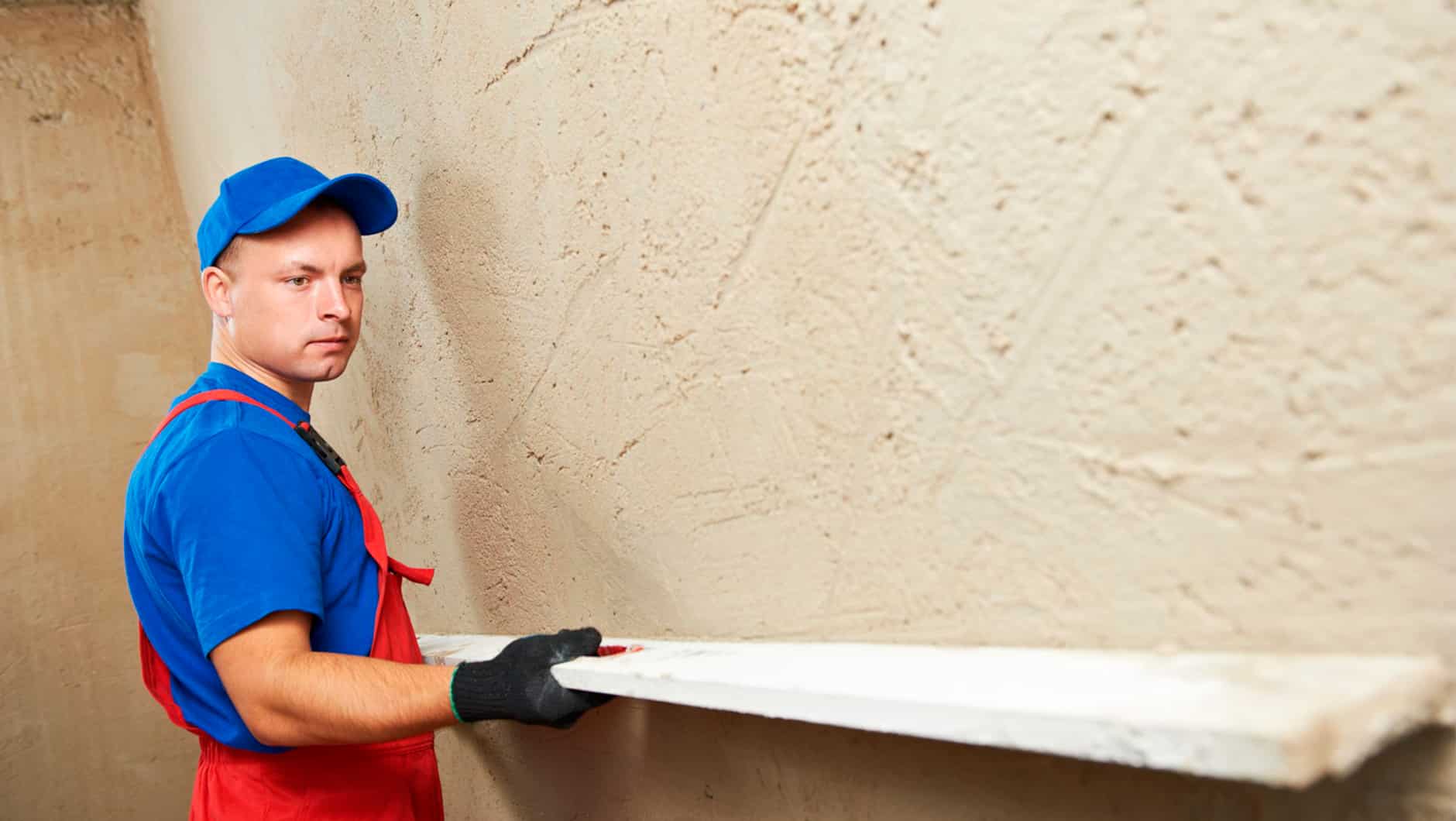 Выравнивание стены оштукатуриванием, при использовании сетки и маяков