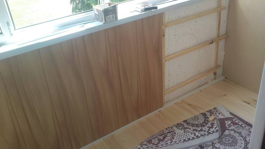 Пример выполнения обрешетки для отделки лоджии пластиком
