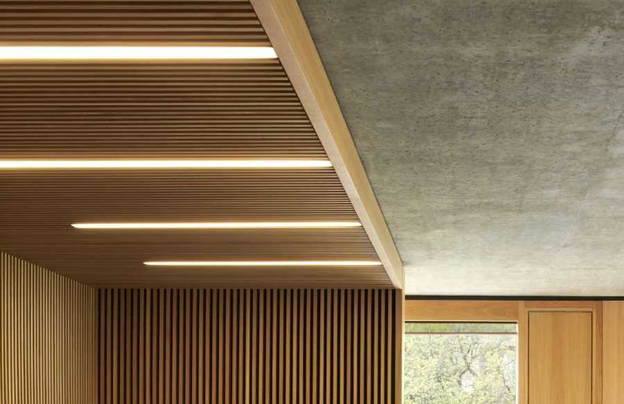 Такой потолок из шпонированных панелей невозможно отличить от дорогостоящих панелей из массива