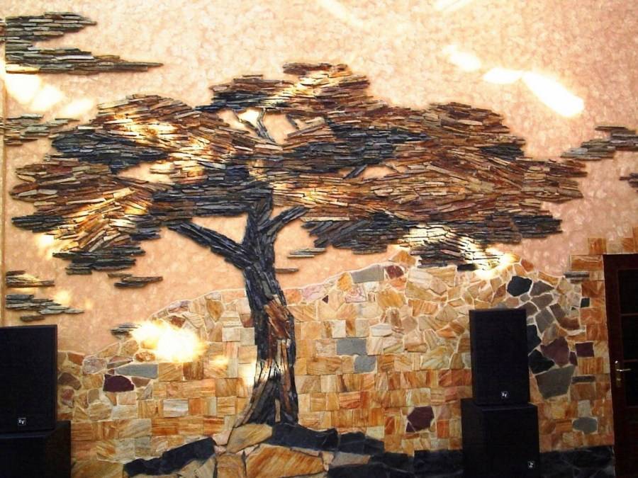 Вместо отделки дорогого натурального камня в качестве материала для внутренней отделки стен производители предлагают каменный шпон – срез каменных пластин толщиной 1−2 мм на гибком стекловолокне.
