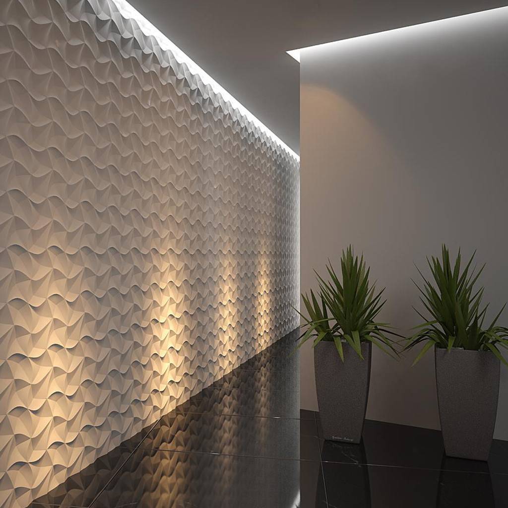 Трехмерные, рельефные изделия, изготавливаемые из гипса, МДФ, алюминия, стекла, пластика, бамбука, тростника. Производители предлагают объемные панели со встроенной LED-подсветкой. Изделия: