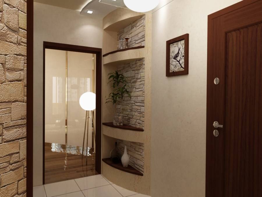 С использованием камня в отделке помещения следует быть очень осторожным. Этот материал выглядит крайне холодно, поэтому чаще всего используется в официальных помещениях. Однако в крупном помещении в квартире – холле, коридоре или прихожей – камень также смотрится достаточно неплохо. Дух пещерности и романтические мотивы можно создать путем использования песчаника или имитирующих его материалов.