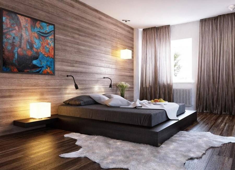 Стеновые панели. Деревянными панелями эффектно декорируют обычно участок стены или одну из стен. При изготовлении панелей иногда используют влагоустойчивое термодерево (темное дерево).