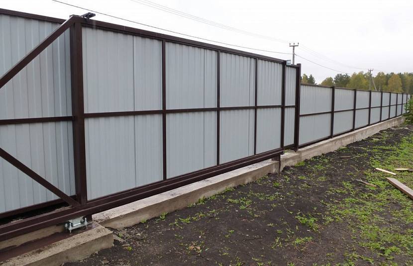 А теперь давайте посмотрим, что получится в результате. В обоих случаях Вы ориентируетесь на одинаковую высоту профлиста, но Вы не учитываете то, что в случае с забором, профлист начинается прямо от земли и его верхний край находится на высоте ровно 2 метра над землей. При этом, в случае с воротами, нижний край откатных ворот не может касаться земли, он приподнят примерно на 10 см от земли.