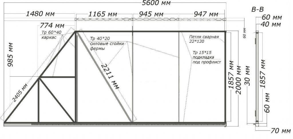 При проектировке конкретных ворот важно правильно рассчитать размеры всех деталей рамы, чтобы она не деформировалась под собственным весом в процессе эксплуатации