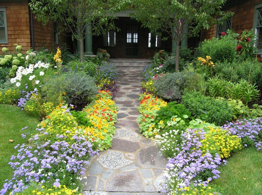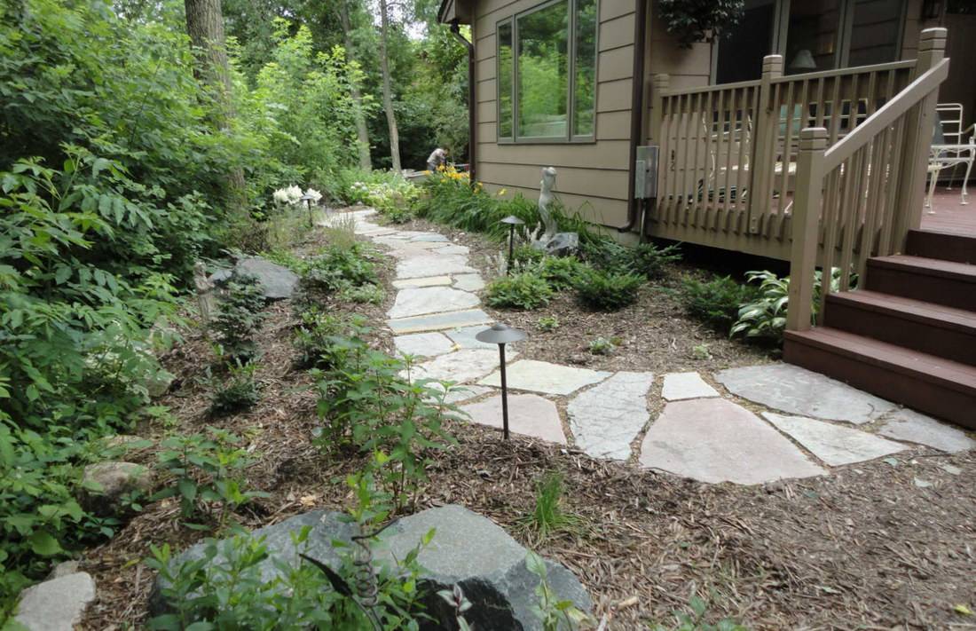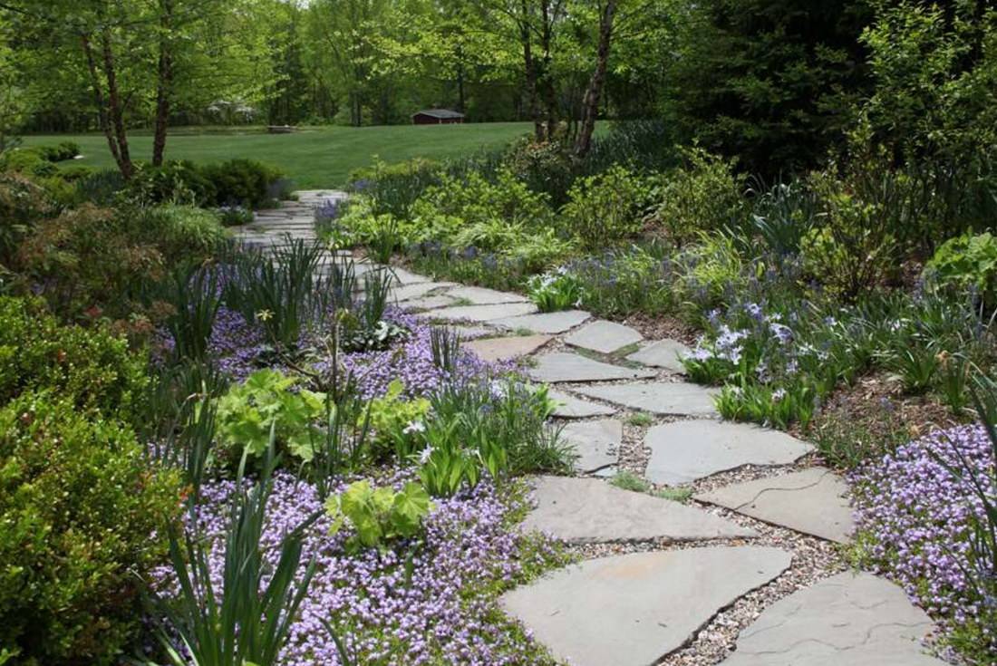 Тропинка из натурального или искусственного камня – отличный вариант зонирования придомового участка, а также его декорирования. С помощью такой удобной дорожки вы сможете свободно перемещаться по приусадебному участку самостоятельно и с инвентарём.