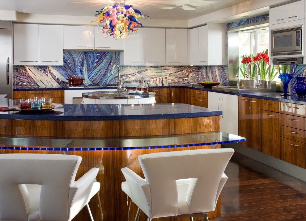 Здесь выбор непосредственно зависит только от стилевого решения кухонного интерьера, пожеланий и фантазий.