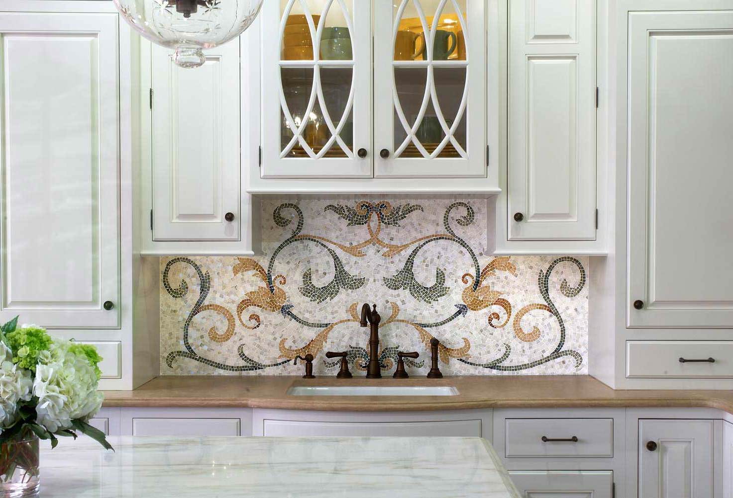 Правильно подобранный узор на мозаичном панно очень гармонично впишется в вашу кухню.