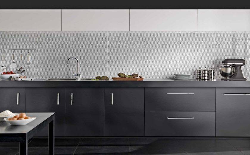 - плитку с имитацией металла. Такая плитка — идеальное решение для кухни в стиле хай-тек или минимализм. Стоит отметить, что на ней очень заметны разводы, капли воды, брызги жира;
