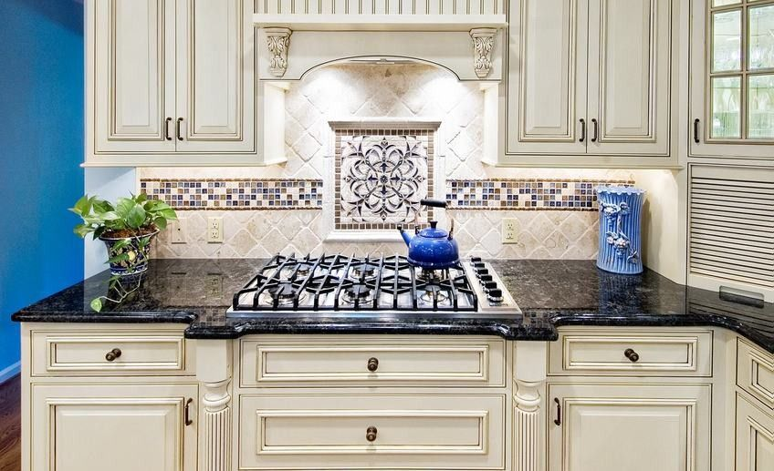Панно располагают в зонах, требующих акцента или визуально выделения. Поэтому «картины» необходимо сочетать с общим фоном кухни. Но плитку необходимо подбирать исключительно под цвет мебели.