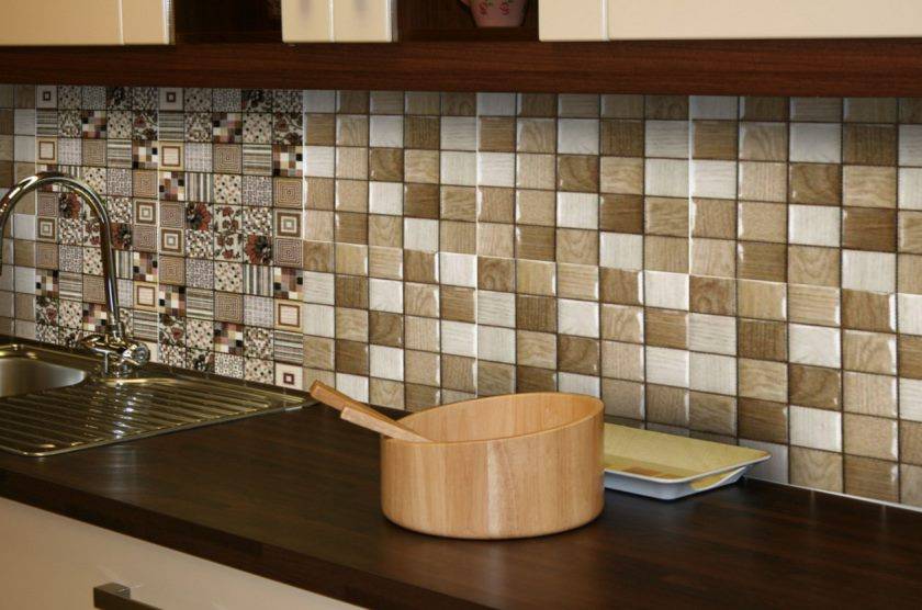- из мозаики, но для кухни такой вариант менее предпочтителен, так как получается много затираемых швов, которые подвергаются воздействию горячего воздуха и жира, а также требуют частой уборки;
