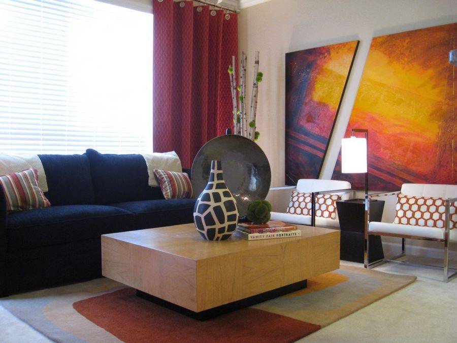 На большой стене недопустимы мелкие элементы. Картины рекомендуется размещать над диваном.