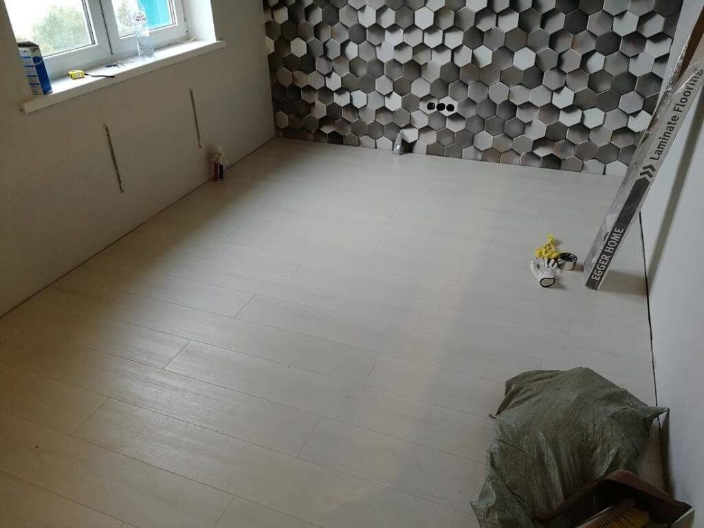 Ламинат Эггер Хоум белого цвета с заметными непрокрасами
