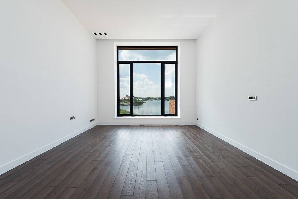 - Помещения большой площади. Когда стены существенно не ограничивают полет дизайнерской мысли реализовать задуманное всегда проще. Можно остановиться на классическом варианте сочетания – белые двери/темный пол, либо же сыграть на противоположном контрасте. Также можно воплотить в жизнь необычное решение: плинтус и дверной наличник установить в единой цветовой гамме, четко разграничив таким образом пол и стены.