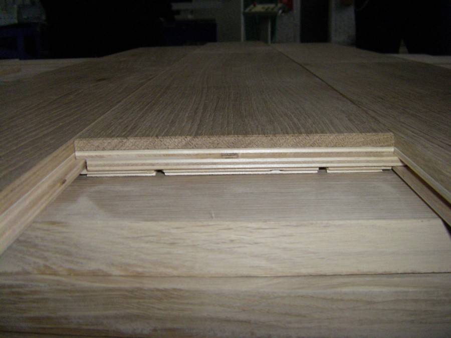 - верхний слой — цельная древесина российского дуба или американского ореха толщиной 4 мм;