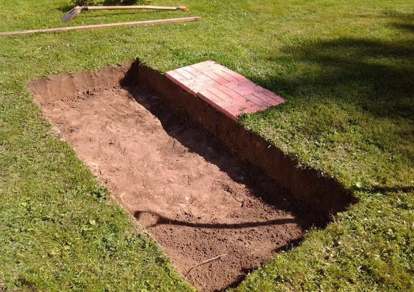 Заполнение ямы песком необходимо проводить послойно (15 см) с трамбованием, либо с проливкой водой для уплотнения. На землю до укладки песка можно постелить геотекстиль, который пропускает воду, но препятствует размыванию песка грунтовыми водами.