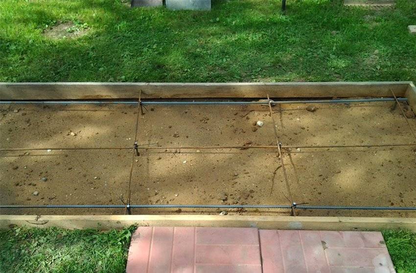 Так как высота сооружения не будет превышать 90 см, то она имеет небольшой вес. Поэтому для основания достаточно просто залить слой бетона толщиной до 12 см, и дополнительно укрепить армированными прутами.