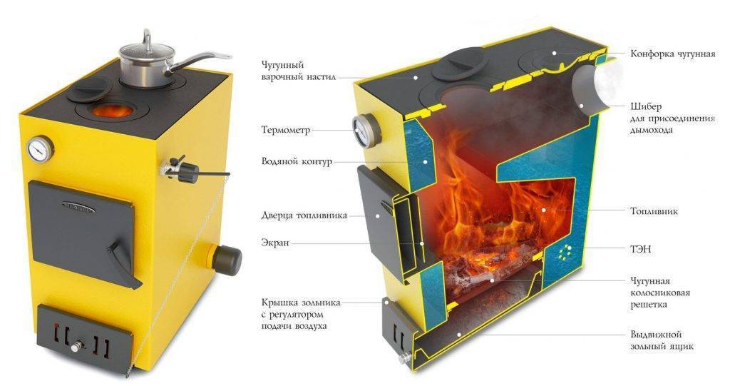 Такая конструкция призвана решать проблемы с обеспечением теплом в домах, которые нуждаются в автономном отоплении. Из-за того, что вода активно циркулирует в различных теплообменных системах, например, в радиаторах, могут отапливаться сразу несколько комнат.