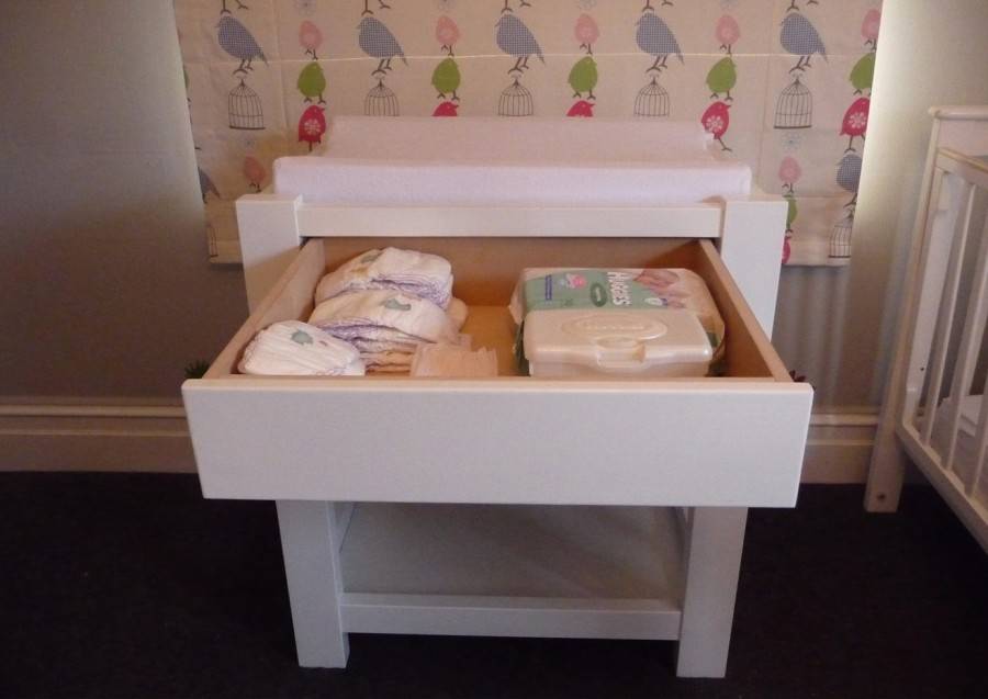 Пеленальный стол, часто деревянный, внизу которого расположены вместительные ящики, – самый практичный вариант. Когда ребенок подрастет и не нужно будет менять подгузники, комод будет служить верой и правдой долгие годы, достаточно только снять верхнюю пеленальную плоскость. Как правило, подобную мебель приобретают в детскую комнату.