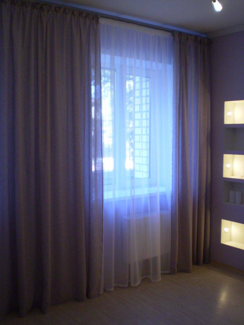 Длинные портьеры в однотонных пастельных тонах подходят для украшения французских, эркерных окон, балконных блоков. Они хорошо вписываются в просторное помещение, но также удивительно подходят для маленькой комнаты, визуально вытягивая ее. Портьеры желательно сочетать с остальным текстилем: подушками, покрывалом или напольным ковром.